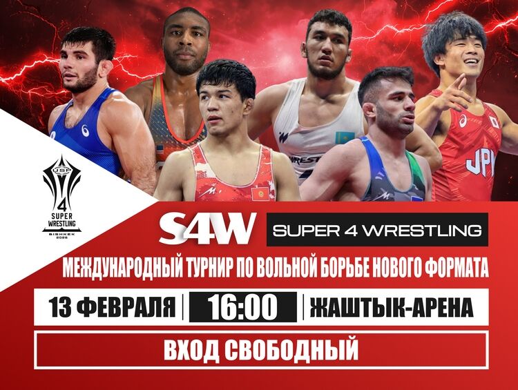 13 февраля в Бишкеке на стадионе «Жаштык-Арена» состоится международный турнир по вольной борьбе Super 4 Wrestling (S4W) — соревнование нового поколения, где на одном ковре встретятся сильнейшие борцы мира.