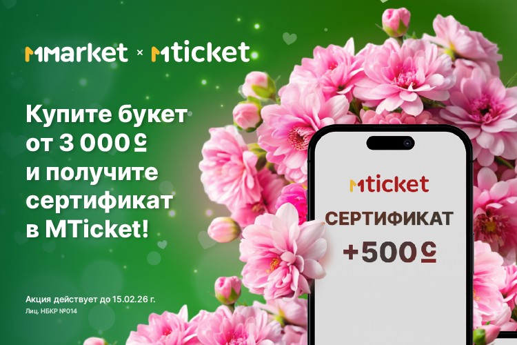 Вместе с ароматом свежих роз или тюльпанов вы получаете сертификат на 500 сомов от MTicket.