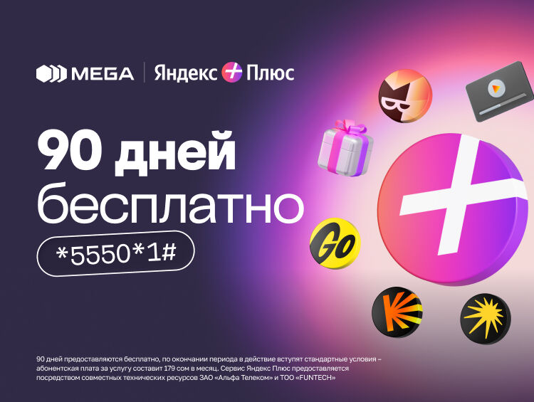 Национальный оператор сотовой связи MEGA напоминает своим абонентам о возможности подключить подписку «Яндекс Плюс» на выгодных условиях. Новые пользователи могут воспользоваться специальным предложением — 90 бесплатных дней для знакомства с сервисом.