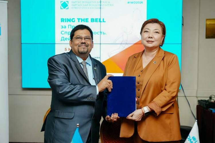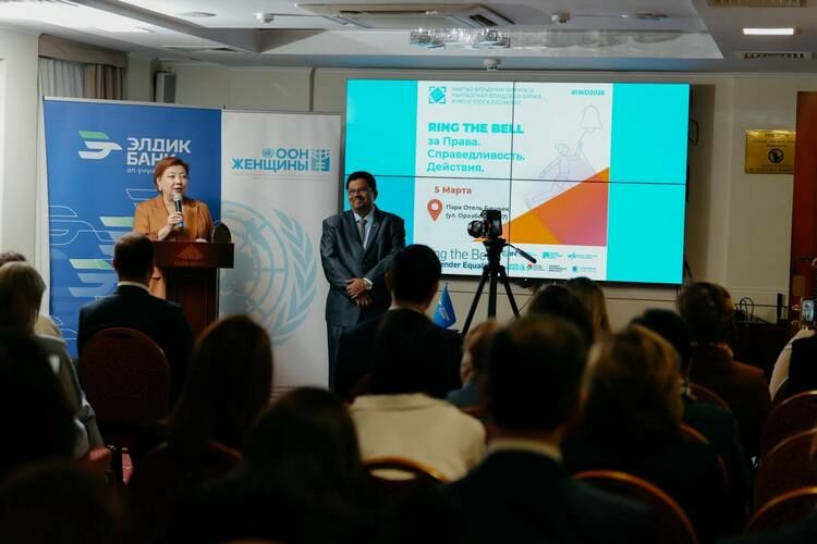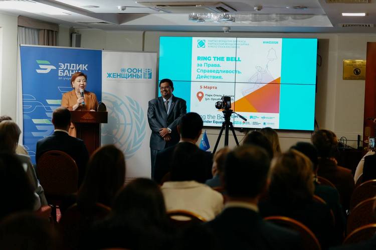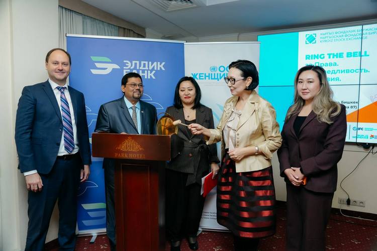 В Бишкеке состоялась 6-я ежегодная церемония открытия торгов в поддержку гендерного равенства Ring the Bell for Gender Equality под девизом «Права. Справедливость. Действие. Для всех женщин и девочек», организованная Кыргызской фондовой биржей совместно со Структурой «ООН-Женщины» в Кыргызской Республике.