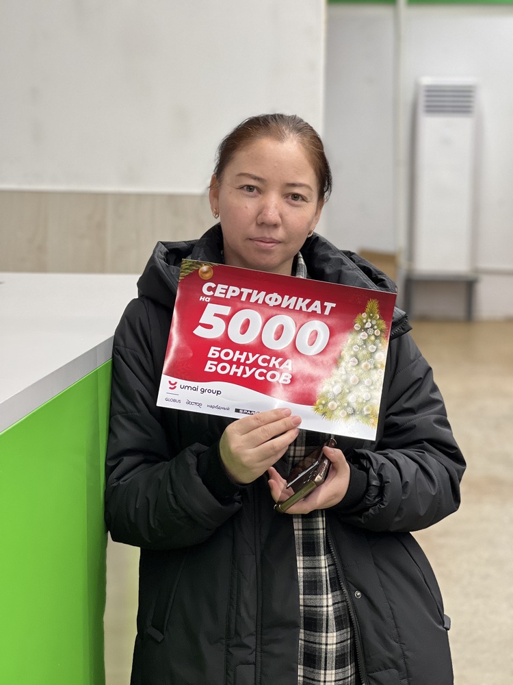 Вместе с главным призом были разыграны и другие подарки. Сертификаты на 10 тысяч бонусов получили: Суусар Молдалиева, Юрий Прокопчук, Назира Усенова, Наталья Демьяненко и Диана Иванчук.