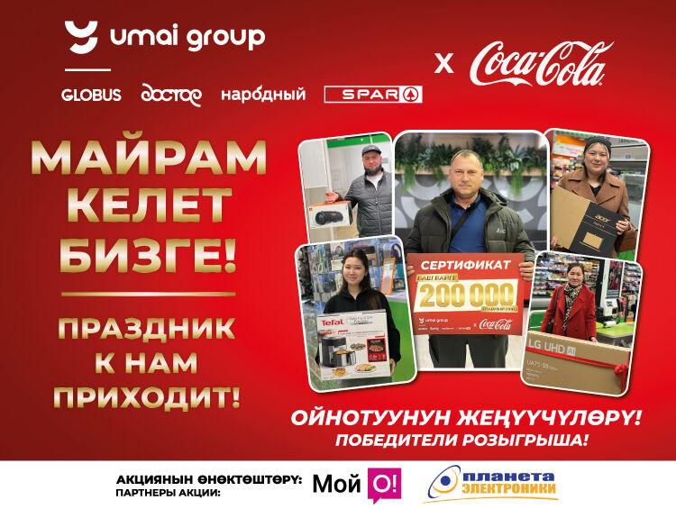 В сетях магазинов крупнейшего отечественного ретейлера «Умай Групп» подвели итоги зимней акции «Праздник к нам приходит!». Финальный розыгрыш прошел 9 марта, в этот день определился обладатель главного приза в 200 тысяч сомов.