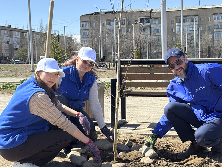 В этом году KICB реализовал мероприятия по посадке деревьев в образовательных учреждениях в Баткенской, Таласской и Ошской областях, а также в Бишкеке и Чуйской области, в общественном парке в Токмоке, а также в специализированном интернате «Умут-Надежда», что подчеркивает фокус банка на инклюзивности и развитии человеческого капитала.