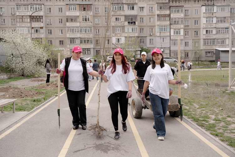 В минувшую субботу в 12-м микрорайоне Бишкека команда О! вместе с учениками школы-интерната № 71 провела восьмую акцию «Посади деревО!». Атмосфера была по-семейному теплой: сотрудники и дети вместе высаживали десятки елей, берез и кленов, превращая территорию в будущее пространство для спорта и отдыха.