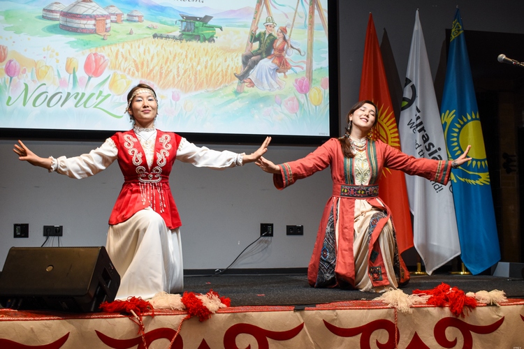 Зал, где проходило мероприятие, был наполнен ароматами национальной кухни: сумолок, наурыз коже, боорсоки, манты, плов, традиционные сладости. За столами звучала родная речь, а на сцене сменяли друг друга выступления студентов — живые, искренние, наполненные ностальгией и гордостью за свою культуру.
