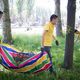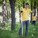 Пятилетний Артемий Демичев в желтой фирменной футболке гордо идет рядом с папой и несет грабли. Говорит, что ему уже доверяют все работы: и ветки собирать, и граблями грести, и подметать.