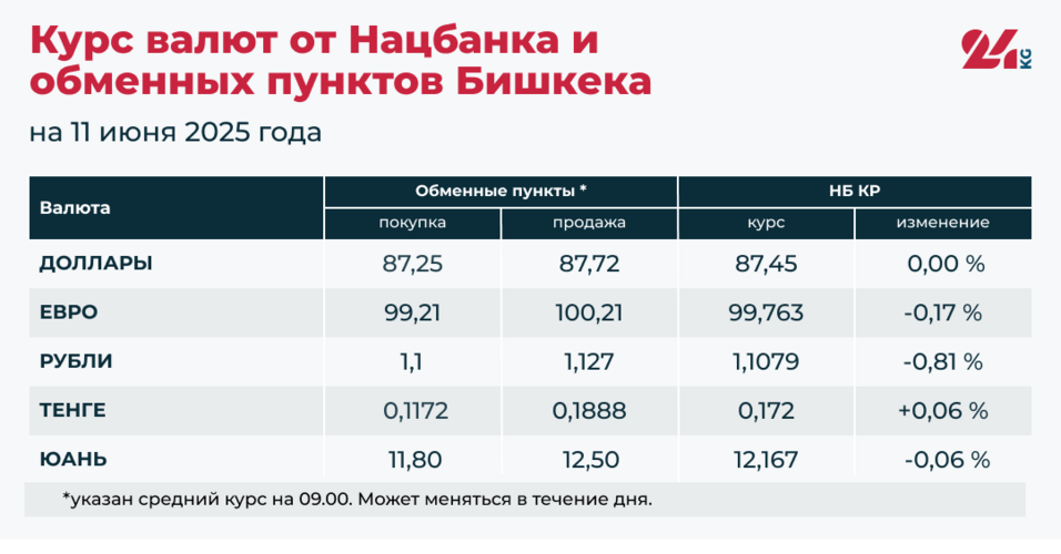 - Официальный курс НБ КР: 12,167 сома (снижение на 0,06 процента).