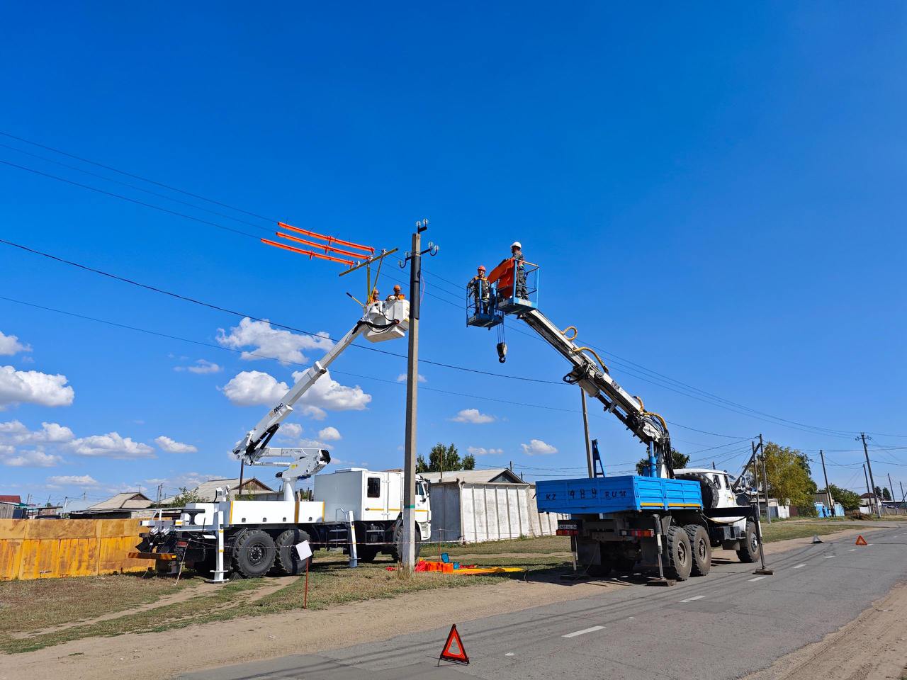 Жители села Кенжеколь первыми оценили новую технологию. Электромонтеры временно перенесли провода, заменили металлическую траверсу на опоре, которая служит для удержания проводов. Все эти работы они провели без отключения света.