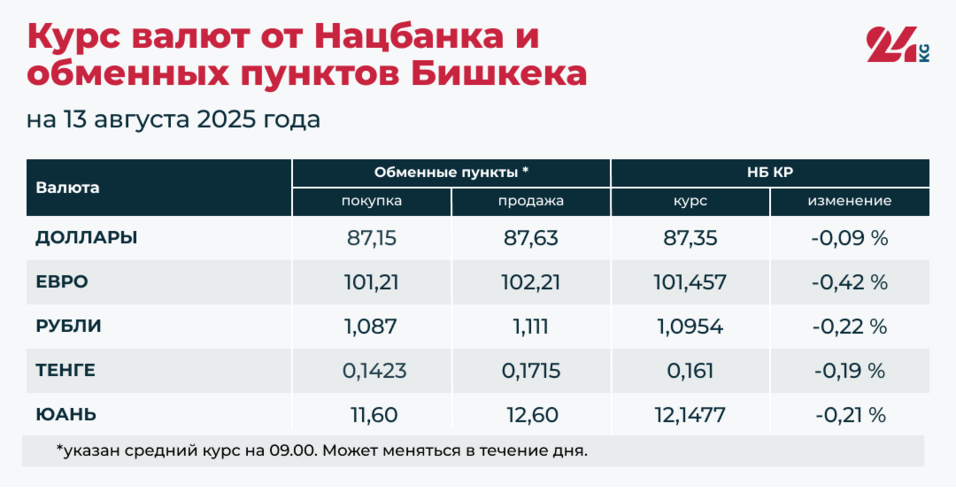 - Официальный курс НБ КР: 87,35 сома (снижение 0,09 процента). Второй день падения. Минимум за последние три недели.