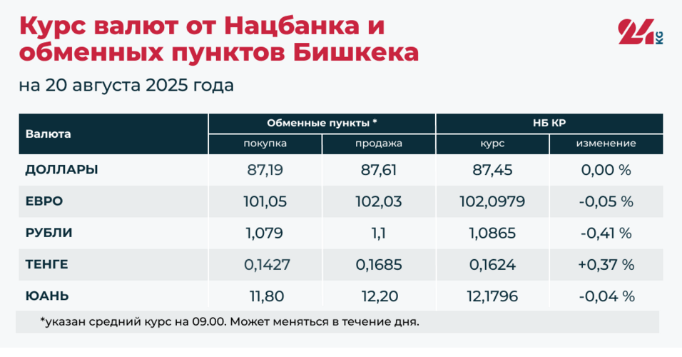 - Официальный курс НБ КР: 87,45 сома (без изменений).