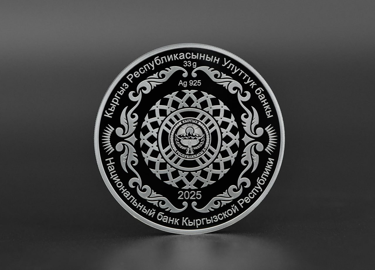 На оборотной стороне монеты размещен герб Кыргызской Республики на фоне тундука в обрамлении стилизованного изображения кереге, решетчатых складных стенок юрты. В верхней и нижней части монеты расположена надпись «Кыргыз Республикасынын Улуттук банкы/Национальный банк Кыргызской Республики». В верхней части монеты указаны вес монеты (33 g) и проба металла (Ag 925). В нижней части монеты указан год выпуска монеты «2025».