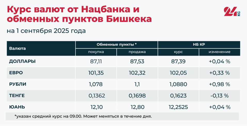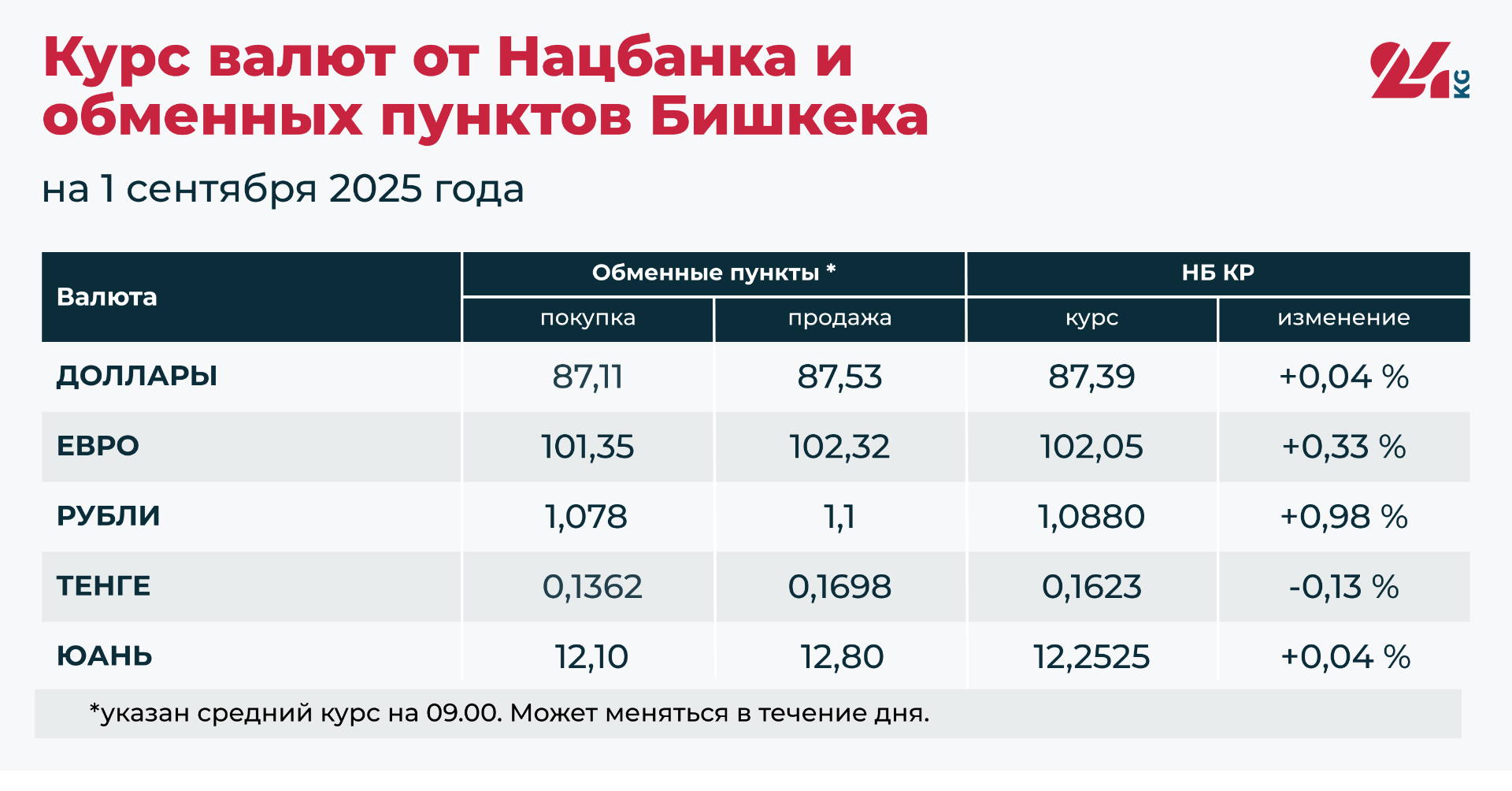 - Официальный курс НБ КР: 87,39 сома (рост на 0,04 процента).
