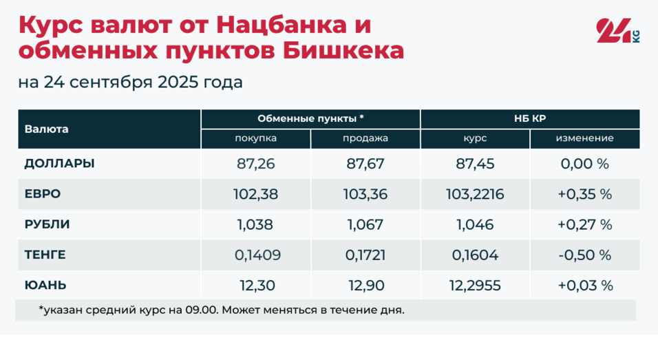 - Официальный курс НБ КР: 87,45 сома (без изменений).