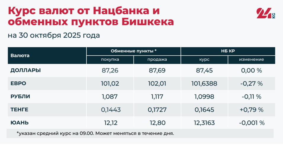 - Официальный курс НБ КР: 87,45 сома (без изменений).