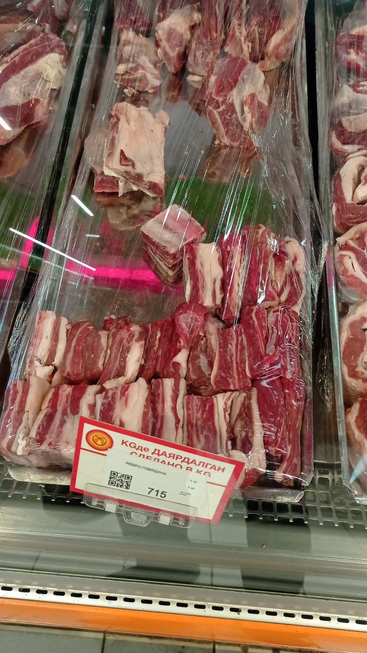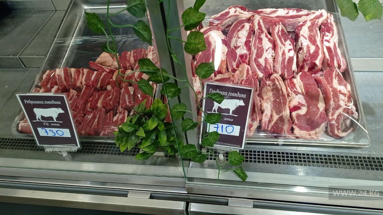 Журналисты 24.kg выяснили, что сейчас килограмм говядины в супермаркетах Бишкека стоит примерно 720-820 сомов, а на рынках — от 650 до 780 сомов, что подтверждает разброс цен и слабое их регулирование.