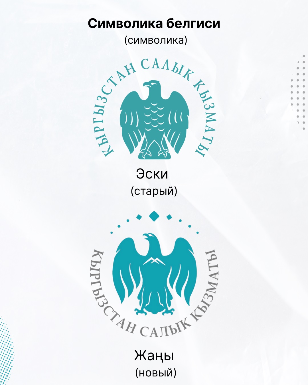 Знак символики выполнен в круглой форме и повторяет основные элементы флага: сине-зеленого орла с расправленными крыльями на белом фоне и обрамляющую надпись в нижней части изображения.