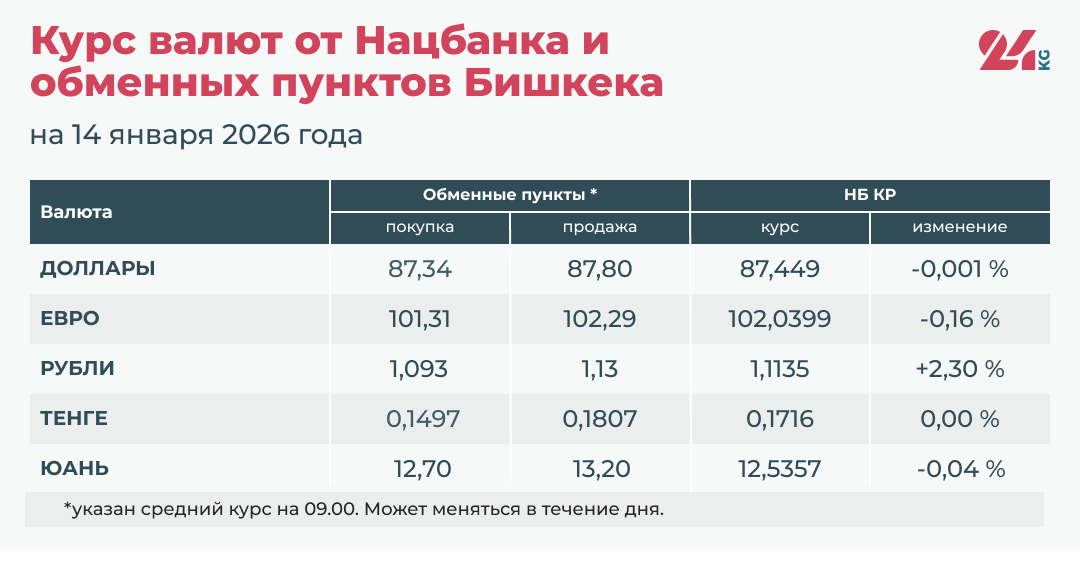 - Официальный курс НБ КР: 87,449 сома (снижение на 0,001 процента).