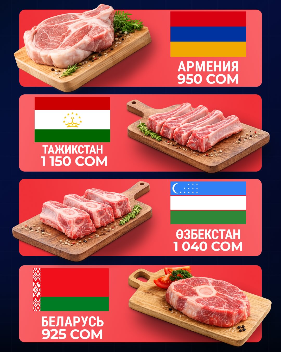 Данные Антимонополии показывают, что самые низкие цены на мясо на кости зафиксированы в Казахстане и Кыргызстане. В других странах ЕАЭС — Беларуси, Армении и России — стоимость выше. Самые высокие цены отмечены в Узбекистане и Таджикистане.