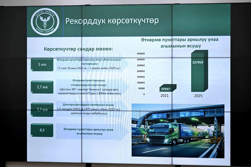 Адылбек Касымалиев отметил колоссальный рост показателей: если в 2020 году сборы ГТС составляли 28 миллиардов, то в 2025 году они достигли 157,4 миллиарда, увеличившись почти в шесть раз.