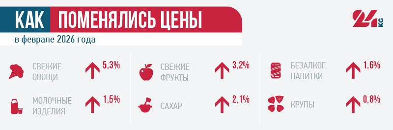 В январе-феврале 2026 года цены и тарифы выросли во всех регионах Кыргызстана, отметили в Нацстаткоме.