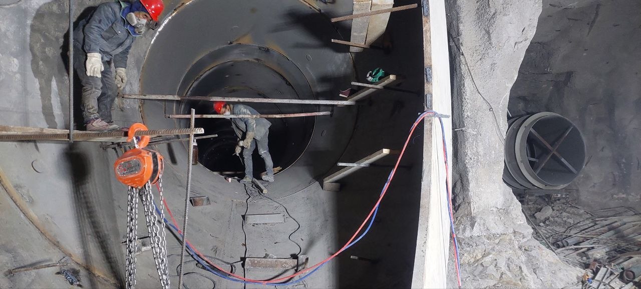 Один из самых сложных этапов уже позади: рабочие полностью пробили подземный тоннель длиной почти в километр (950 метров). Чтобы он был прочным и выдерживал напор воды, его изнутри укрепили бетоном и специальным металлом. Закончили заливку бетонной шахты, через которую вода будет поступать на станцию, и начали строить здание, где разместят механизмы для управления потоком воды.
