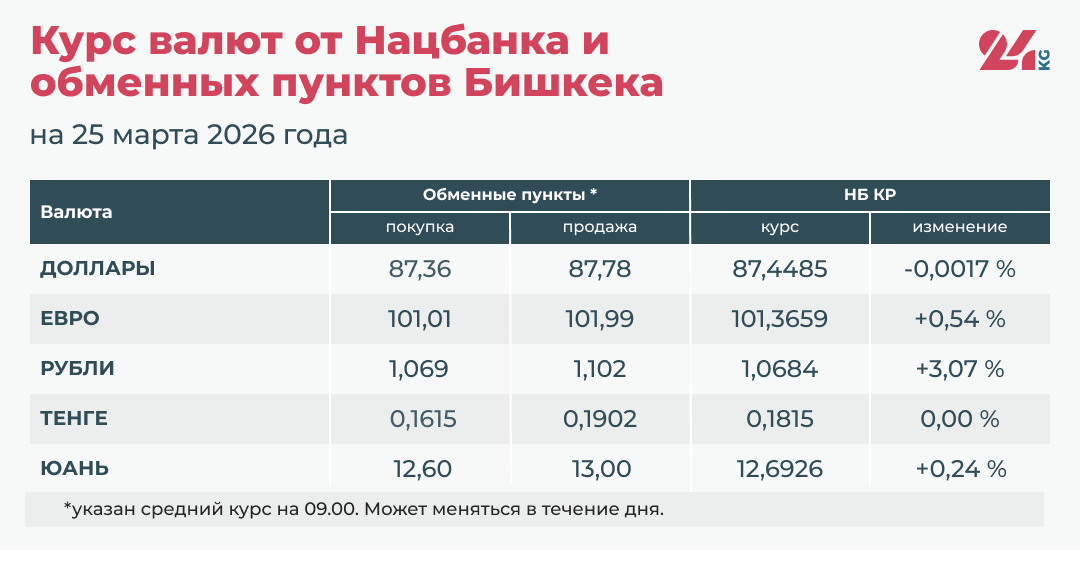 - Официальный курс НБ КР: 87,4485 сома (снижение на 0,0017 процента).