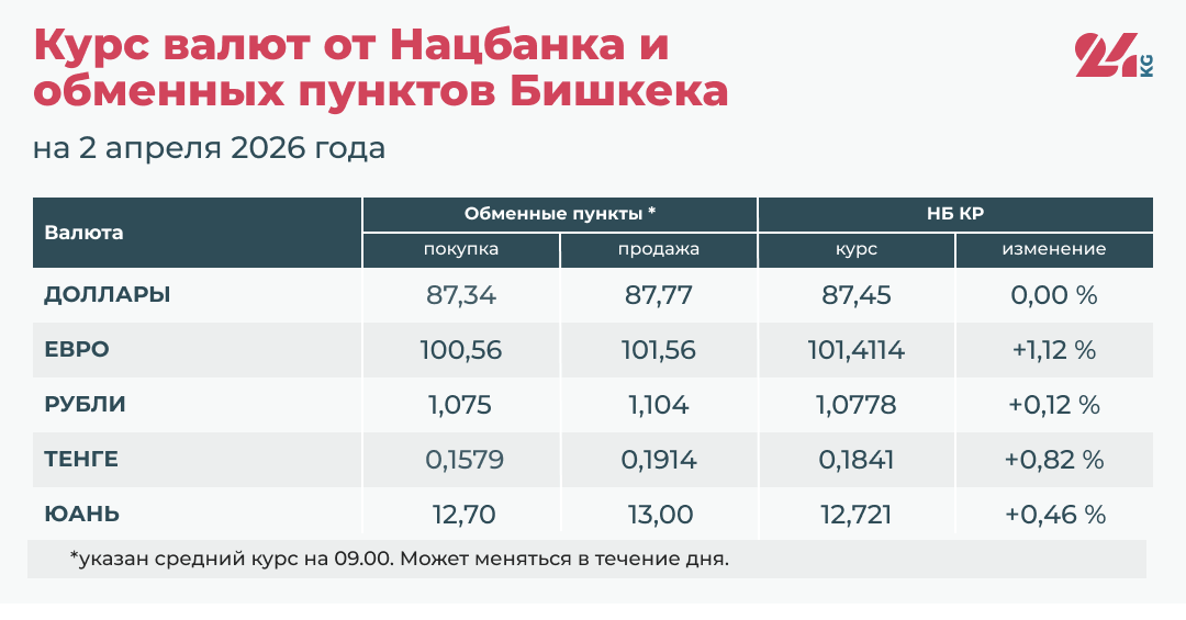 - Официальный курс НБ КР: 87,45 сома (без изменений).