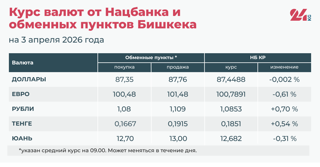 - Официальный курс НБ КР: 100,7891 сома (снижение на 0,61 процента).