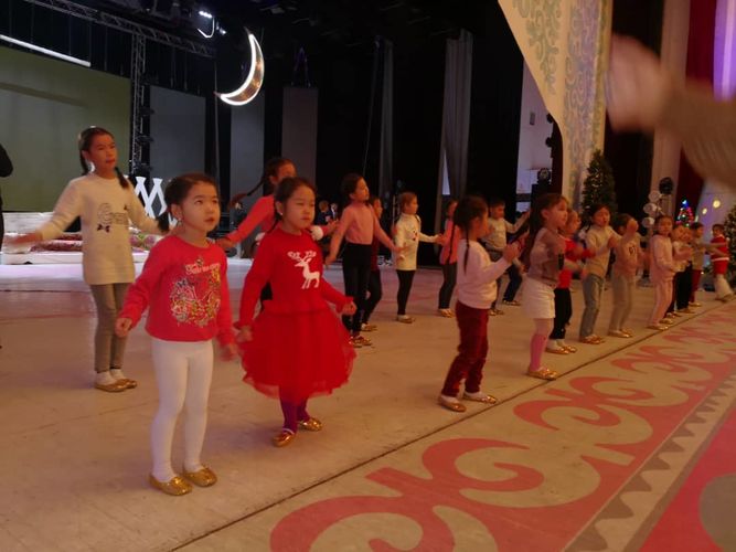 Presidential New Year’s party for children is held in Bishkek. More than 1,000 children participate in it. At least 30 best students, winners of competitions and contests were invited to it from each region of the country.