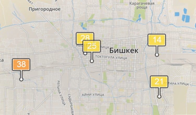 MoveGreen NGO and an activist from Almaty, Pavel Alexandrov, collected sensors for Bishkek and tied them to a map.