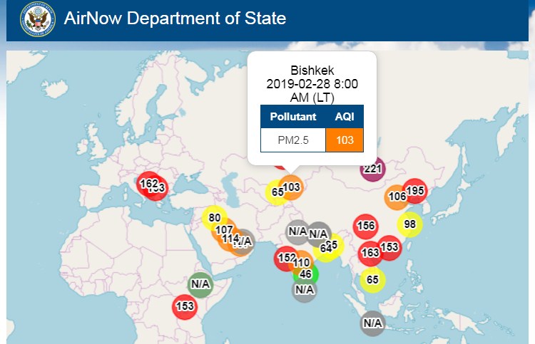 The U.S. Embassy in Kyrgyzstan also installed its air pollution meter in Bishkek city. The information is updated hourly.