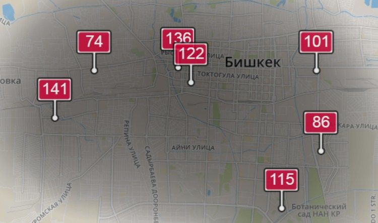 MoveGreen NGO and an activist from Almaty, Pavel Alexandrov, collected sensors for Bishkek and tied them to a map.