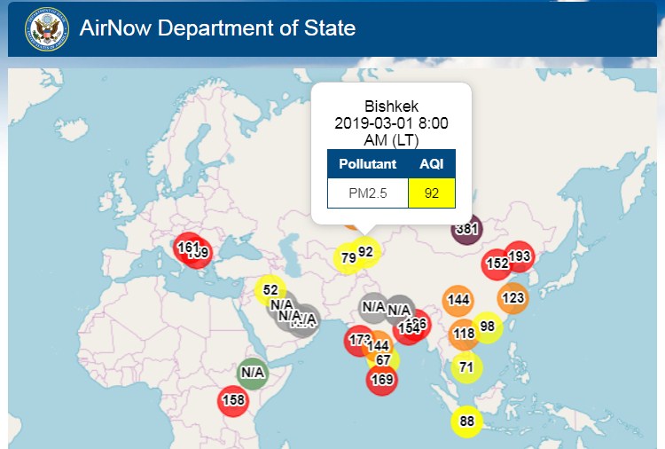 The U.S. Embassy in Kyrgyzstan also installed its air pollution meter in Bishkek city. The information is updated hourly.