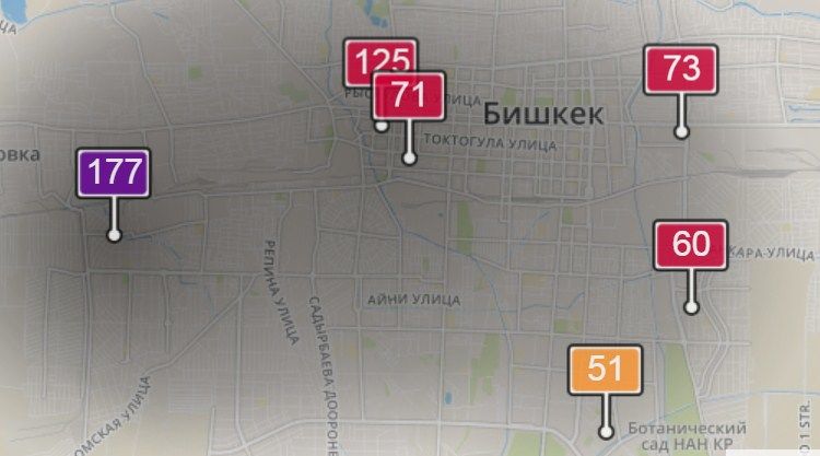 MoveGreen NGO and an activist from Almaty, Pavel Alexandrov, collected sensors for Bishkek and tied them to a map.