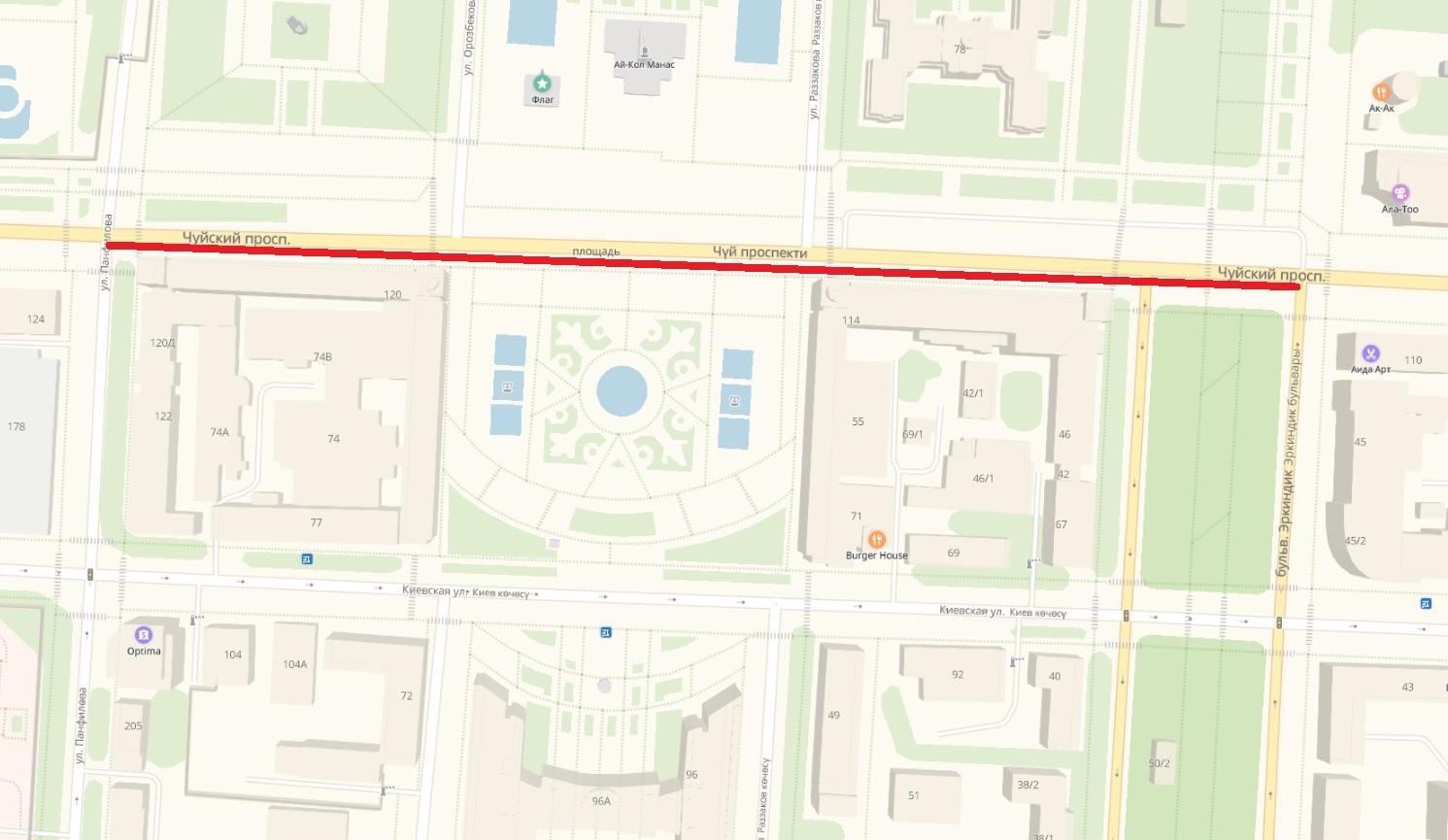 On March 18-19, 2019, Chui Avenue will be closed from Erkindik Boulevard to Panfilov Street from 17.00 to 20.00.