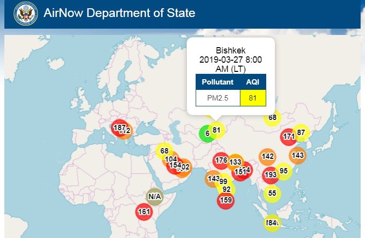 The U.S. Embassy in Kyrgyzstan also installed its air pollution meter in Bishkek city. The information is updated hourly.