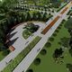 Playgrounds for children, hedge mazes, workout platforms, decorative pedestrian bridges, benches and other necessary elements are planned to be installed there. Race track and cycle lane will be laid around the perimeter.