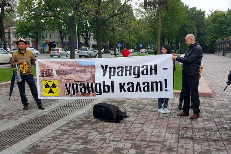 Participants of the protest demand to instruct the licensing commission of the State Committee for Industry, Energy and Subsoil Use of Kyrgyzstan to conduct immediate audit and cancel over 35 previously issued licenses for geological exploration, sampling, mining and processing of uranium throughout Kyrgyzstan.