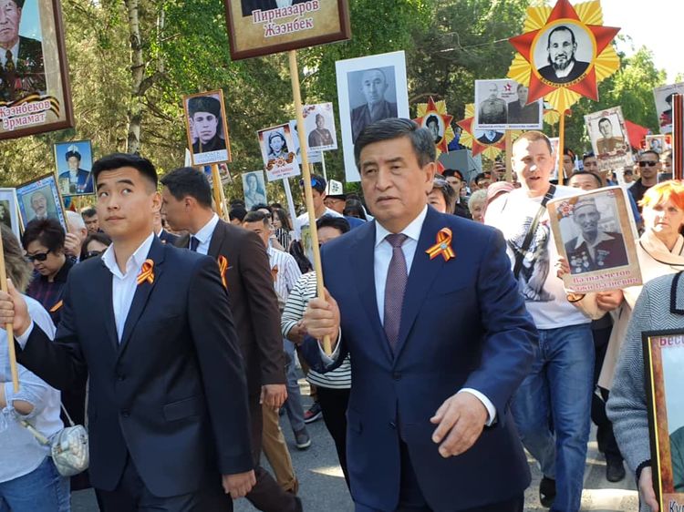 Immortal Regiment march, dedicated to the 74th anniversary of the Victory in the Great Patriotic War, started in Bishkek. The column is headed by the President of Kyrgyzstan Sooronbai Jeenbekov.