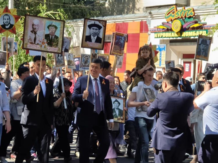 Head of the state carries the photo of his grandfather Jeenbek Pirnazarov. Sooronbai Jeenbekov stressed that Immortal Regiment march is the eternal memory of those who gave their lives for homeland and wished peace throughout the world and in Kyrgyzstan.