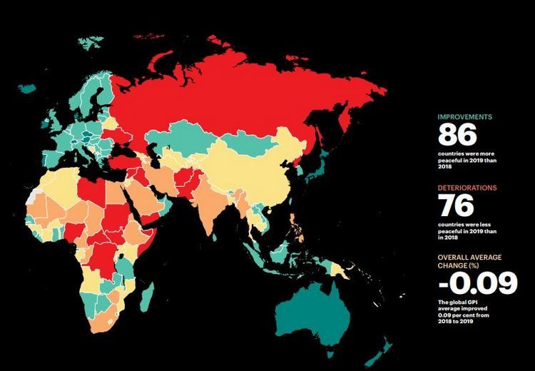 Results of 2019 show that the average level of global peace has improved slightly for the first time in five years. At least 86 countries showed better results, and a deterioration was registered in 76 countries.