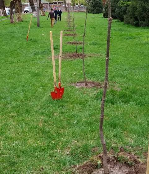 In the framework of the celebration of the 25th anniversary of Kyrgyz Pochtasy state enterprise, its employees planted 50 oaks.