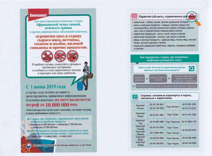 If a person has not declared the import of items infected with infectious animal diseases, a fine of 10 million won is imposed. Foreigners will be banned from entering the country.