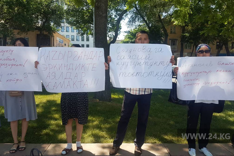 The Bishkek City Court upheld the preventive measure to Aida Salyanova in form of detention until August 26. Participants of the rally demanded to release Aida Salyanova.