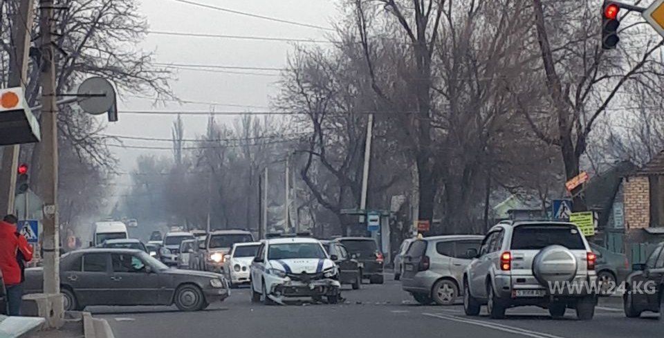 «Police car collided with a cargo-passenger Mercedes Sprinter at the intersection of Togolok Moldo and Leningradskaya Streets. No victims and injured were reported,» the eyewitnesses said.