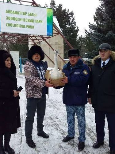 Employees of the Interregional Department of Ecological and Technical Inspection found a frozen whooper swan. Director of Karakol zoo, President of Bugu-Ene Public Foundation Saltanat Seitova posted on Facebook.