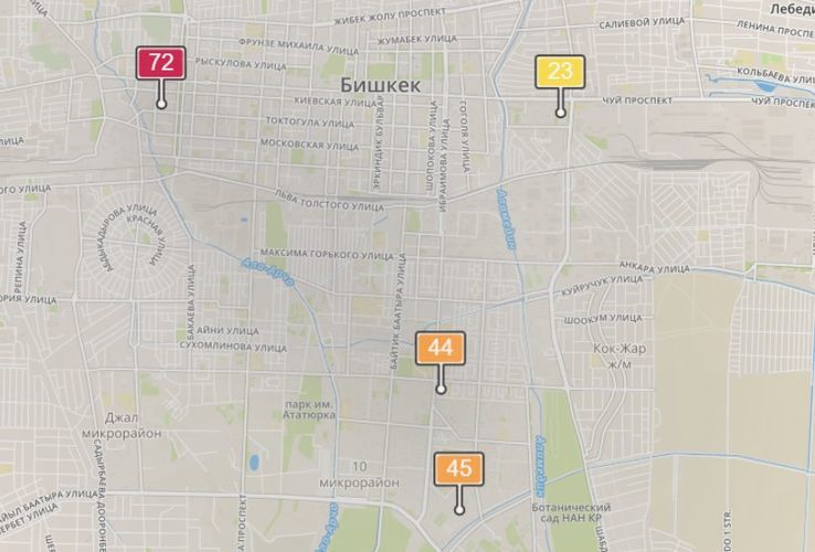 MoveGreen environmental movement installed several sensors in Bishkek that measure the content of small PM2.5 particles in the air.