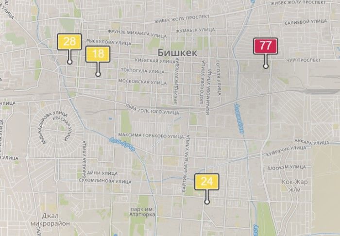 MoveGreen environmental movement installed several sensors in Bishkek that measure the content of small PM2.5 particles in the air.