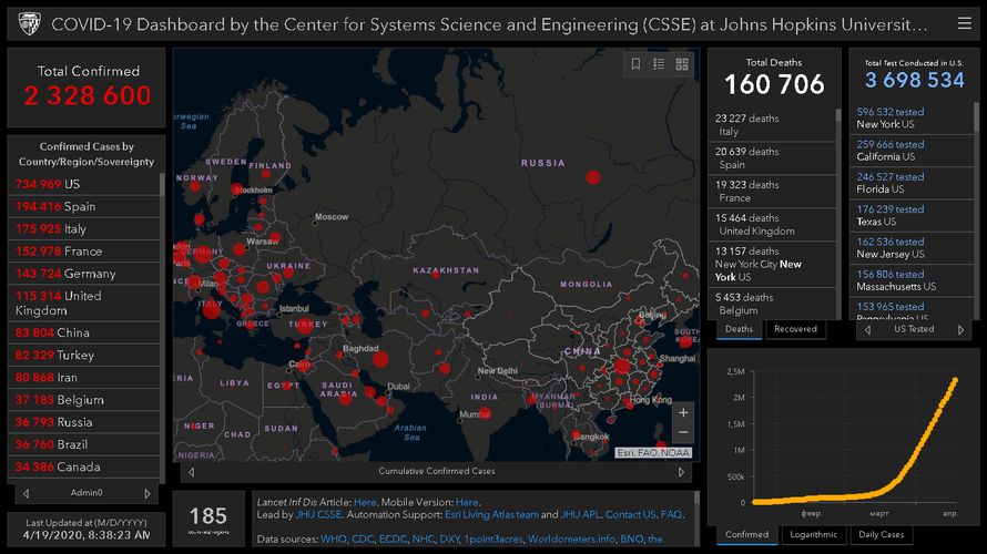 Over the past day, the number of people infected with novel coronavirus has increased by 85,088. Data of an online map developed by scientists say.