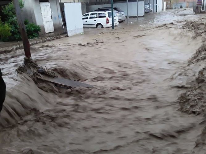 The mudflow formed as a result of heavy precipitations in Leilek district.